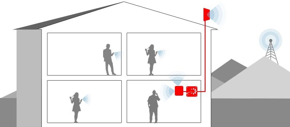 Amplifica la señal móvil en edificios comerciales, de oficinas, hoteles, etc.