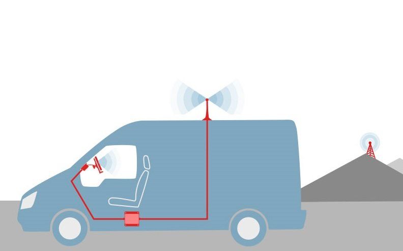 Amplifica señal móvil en el automóvil, camión o vehículo de flota.