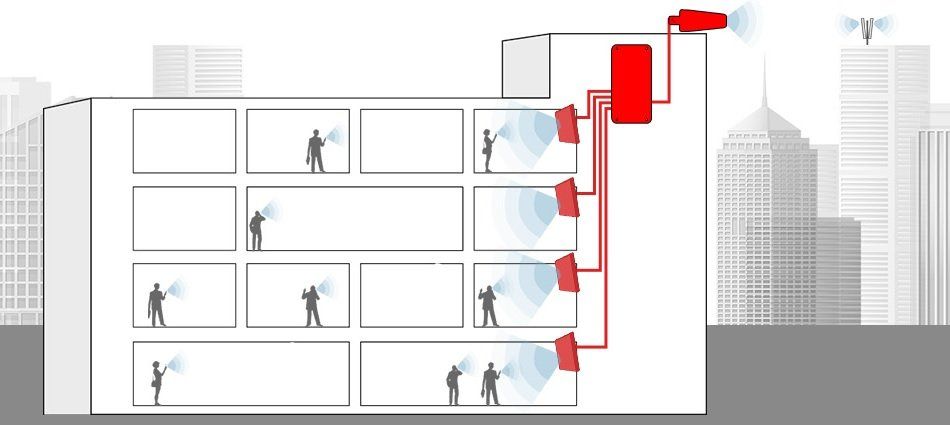 Amplifica la señal móvil en edificios comerciales, de oficinas, hoteles, etc.