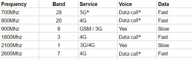 * 5G se transmite normalmente por la banda de 700MHz. Consulte a su operador.